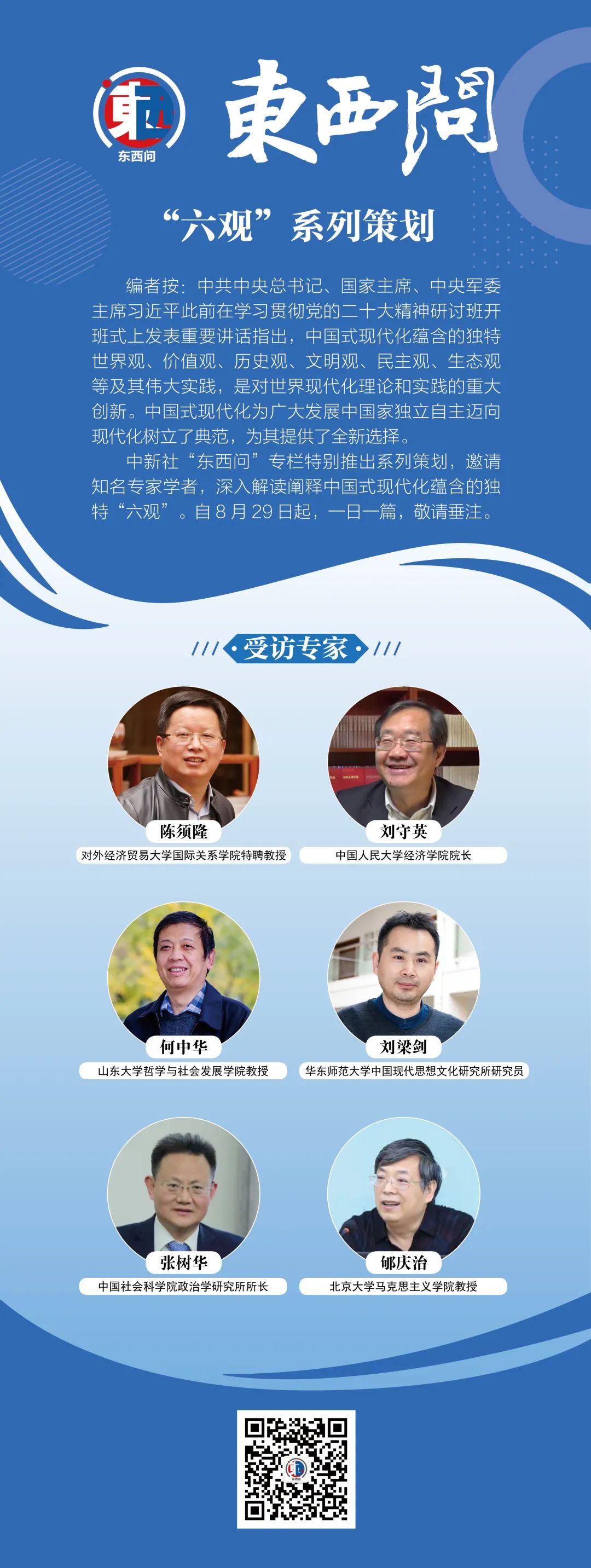 中新社“東西問”專欄特別推出系列策劃,邀請(qǐng)知名專家學(xué)者,深入解讀闡釋中國(guó)式現(xiàn)代化蘊(yùn)含的獨(dú)特“六觀”?! ?月29日起播發(fā),一天一篇,敬請(qǐng)垂注。