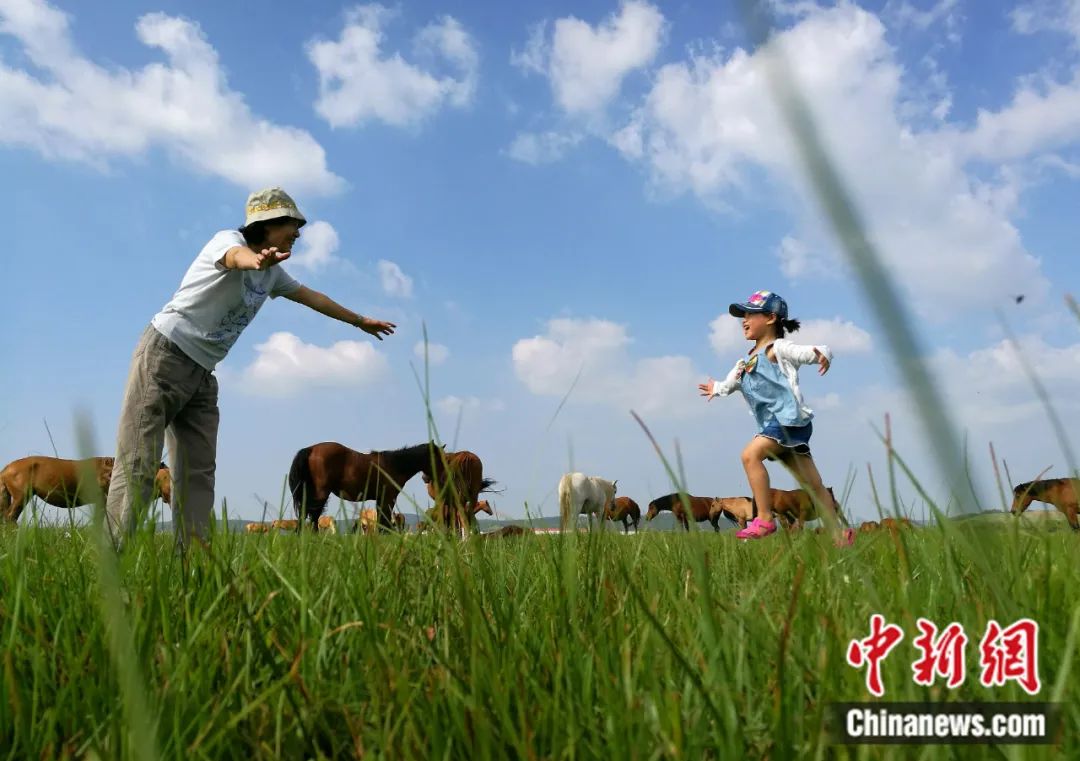 2016年8月,祖孫倆在塞罕壩機(jī)械林場(chǎng)內(nèi)玩耍。在半個(gè)多世紀(jì)的時(shí)間里,塞罕壩人將昔日飛鳥不棲、黃沙遮天的荒原,變成百萬畝人工林海。楊可佳 攝