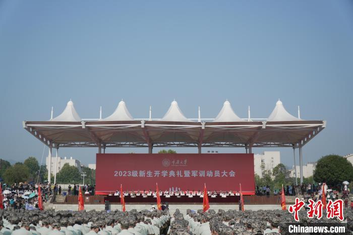 圖為重慶大學(xué)2023級本科生開學(xué)典禮暨軍訓(xùn)動員大會現(xiàn)場。中新網(wǎng)記者周毅攝