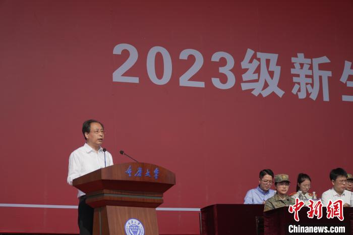 中新網(wǎng)重慶9月3日電 (記者 鐘旖)重慶大學(xué)2023級本科生開學(xué)典禮暨軍訓(xùn)動員大會3日在校內(nèi)舉行。重慶大學(xué)校長、中國工程院院士王樹新為來自五湖四海的新生帶來“開學(xué)第一課”。