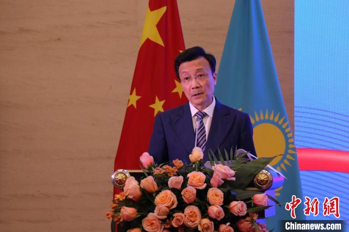 中國(guó)駐哈薩克斯坦大使張霄在發(fā)言中。 中新網(wǎng)記者 張碩 攝