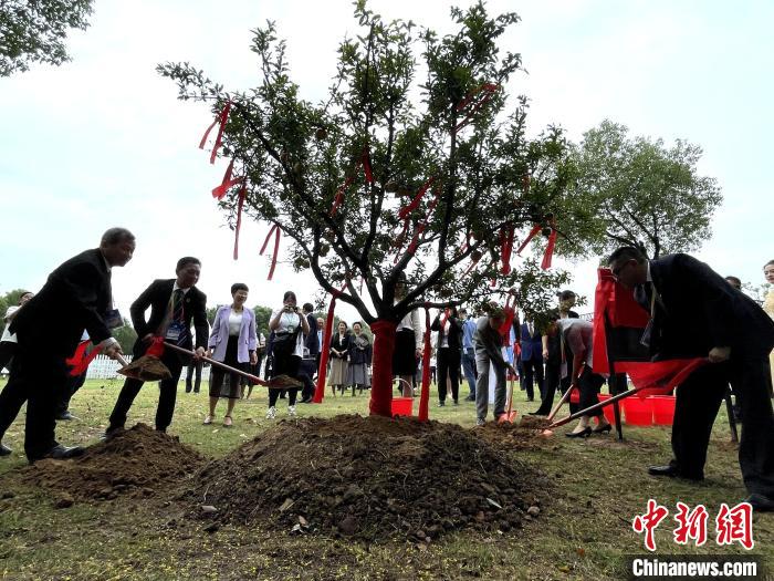 9月13日,第五屆海峽兩岸姊妹湖產(chǎn)業(yè)協(xié)作年會在武漢啟幕,8個湖泊代表共植“姊妹樹”。 中新社記者 馬芙蓉 攝
