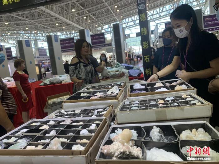 觀眾在中國(湖南)國際礦物寶石博覽會(huì)上“淘寶”。魯毅 攝