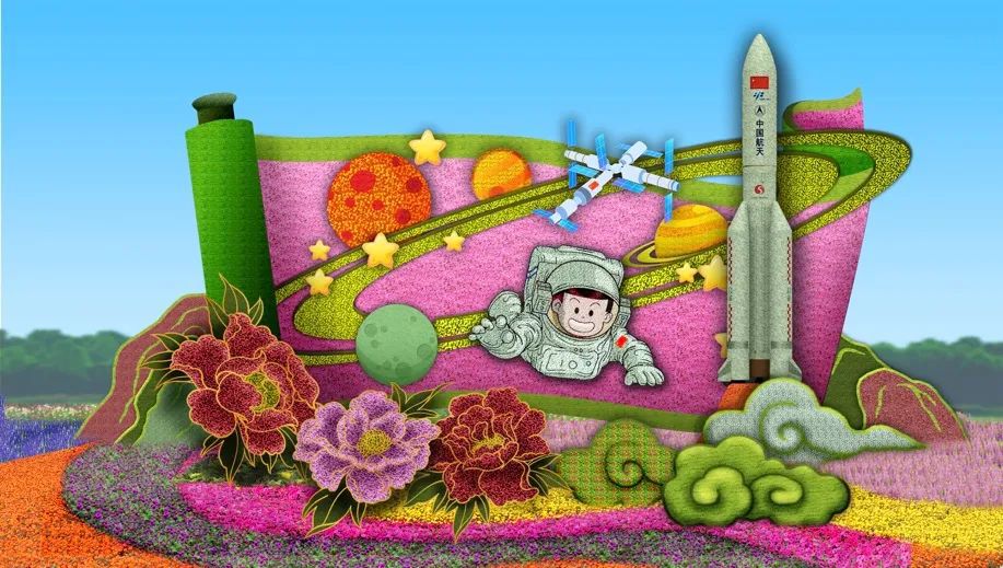 10. 復(fù)興門東北角的“筑夢未來”花壇頂高8.5米,以中國航天員、空間站為主景,寓意航天強(qiáng)國建設(shè)蓬勃發(fā)展,助力中國夢早日實(shí)現(xiàn),全面推進(jìn)中華民族偉大復(fù)興,譜寫新時代中國特色社會主義更加絢麗的華章。