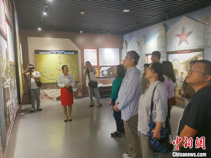 華媒代表們來(lái)到“半條被子的溫暖”專題陳列館參觀采訪。向一鵬 攝