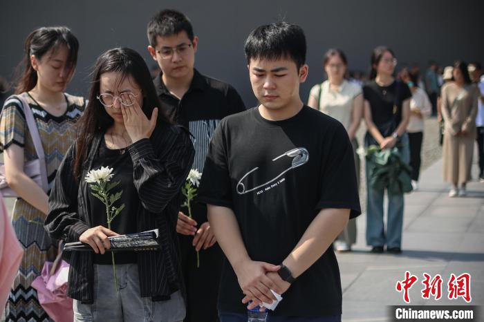 9月18日,在防空警報聲中,侵華日軍南京大屠殺遇難同胞紀(jì)念館中的參觀者駐足默哀?!°蟛?攝