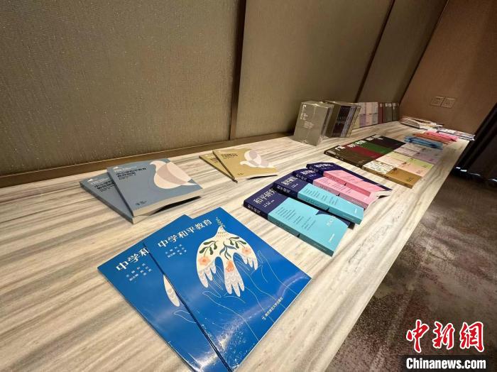 論壇上展示的南京中小學(xué)和平教育教材?!∩耆?攝