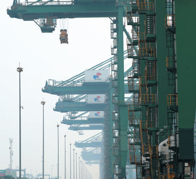 依托天津港的區(qū)位優(yōu)勢(shì),海鐵聯(lián)運(yùn)成為天津中歐班列的特色。圖為9月18日,天津港集裝箱岸橋作業(yè)現(xiàn)場(chǎng)。