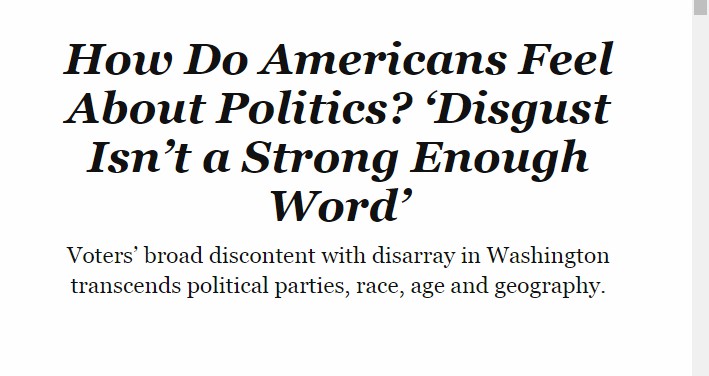 美國(guó)民眾批評(píng)政府功能失調(diào):政治領(lǐng)導(dǎo)人疏遠(yuǎn)我們,兩黨根本無法為國(guó)家謀福利!