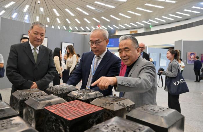 開幕式現(xiàn)場(chǎng)氣氛熱烈,各國(guó)外交官及國(guó)際職員們被參展藝術(shù)家的作品深深吸引,對(duì)中外藝術(shù)家通過當(dāng)代藝術(shù)角度,表達(dá)對(duì)中國(guó)式現(xiàn)代化應(yīng)對(duì)全球性挑戰(zhàn)的思考、傳播推進(jìn)全球發(fā)展事業(yè)和世界發(fā)展合作的意識(shí)予以高度評(píng)價(jià),對(duì)藝術(shù)家的精彩呈現(xiàn)表達(dá)贊嘆。