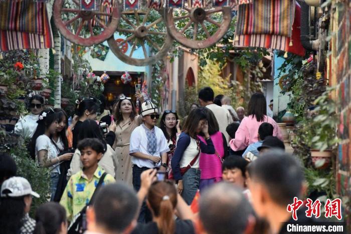 正值中秋國(guó)慶假期,位于中國(guó)西部的新疆喀什古城景區(qū)迎來(lái)旅游高峰,成為眾多游客的出行目的地。圖為10月1日,喀什古城景區(qū)里絡(luò)繹不絕的游客。 中新網(wǎng)記者 孫亭文 攝
