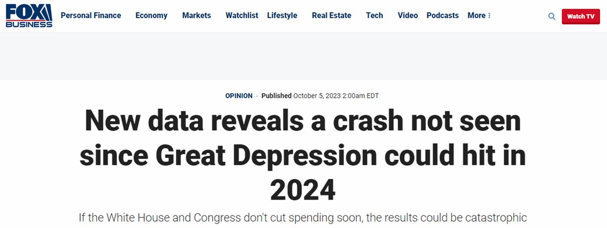 報(bào)道中寫道,越來越多的數(shù)據(jù)表明,一場(chǎng)破壞性超過大蕭條的經(jīng)濟(jì)崩盤可能即將在2024年降臨美國(guó)。白宮和國(guó)會(huì)如果不盡快削減政府支出,結(jié)果可能是災(zāi)難性的。