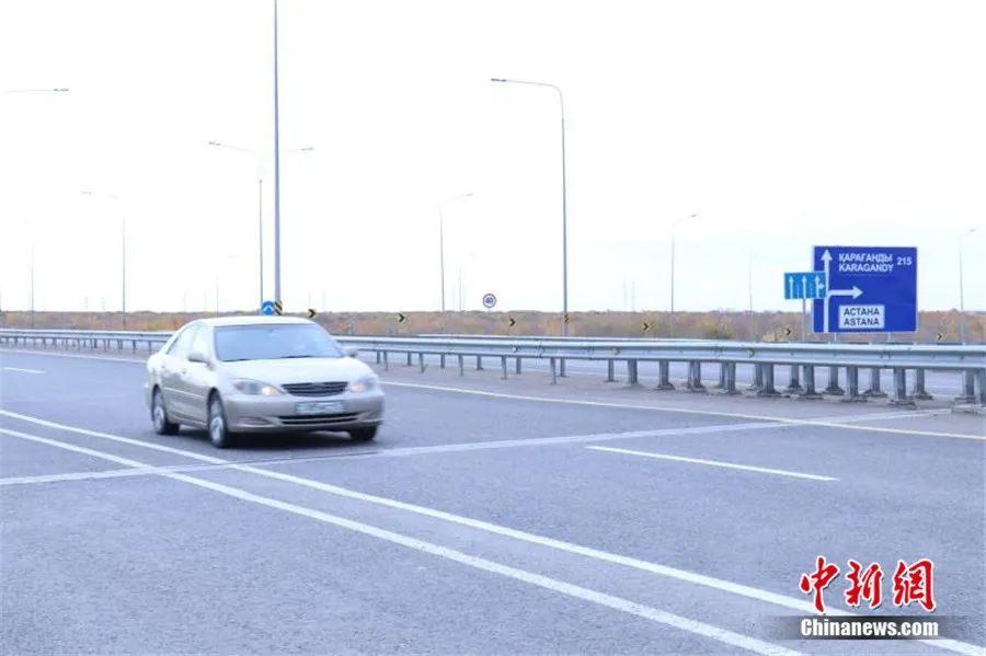 由中國新興建設總承包的哈首都阿斯塔納西南環(huán)城公路項目。張碩 攝