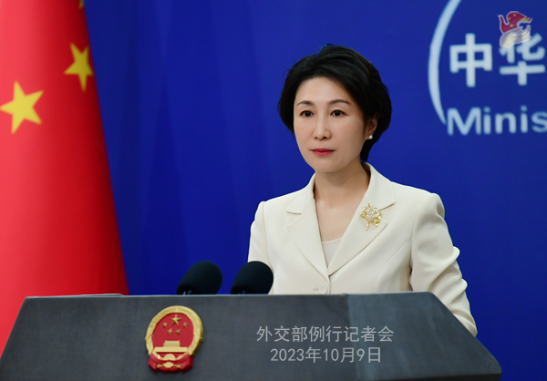 中新網(wǎng)北京10月9日電 (李京澤 謝雁冰)中國外交部發(fā)言人毛寧9日主持例行記者會。