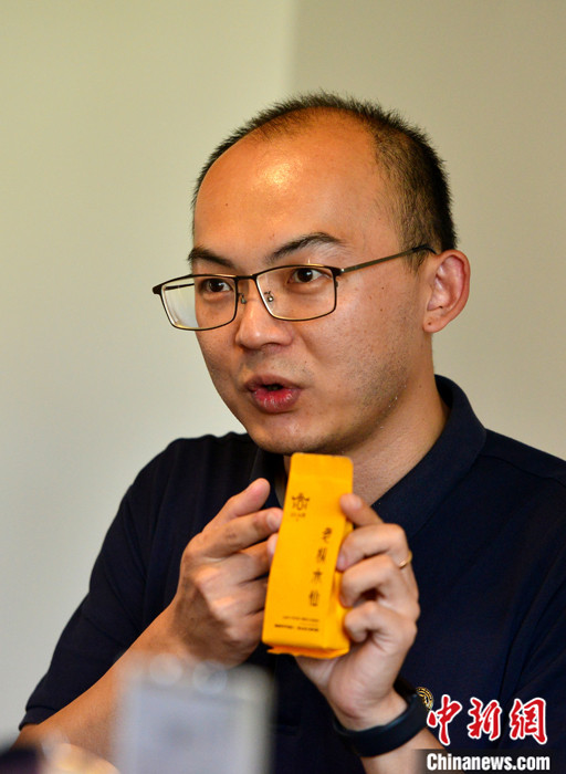 圖為9月19日,曾冠穎在“101公館”展示自己在漳州長泰茶山生產(chǎn)的臺灣茶。 中新社記者 張斌 攝