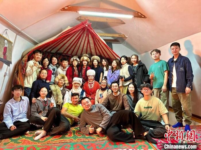 北師大未來設(shè)計(jì)學(xué)院師生在吉爾吉斯斯坦民族服飾設(shè)計(jì)工作室體驗(yàn)當(dāng)?shù)貍鹘y(tǒng)服飾。北師大未來設(shè)計(jì)學(xué)院供圖