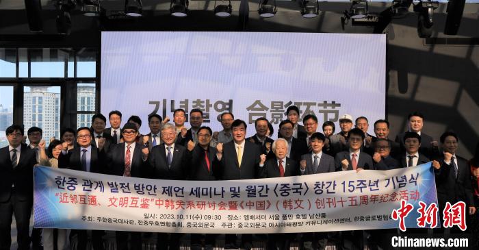 中新網(wǎng)首爾10月12日電 (記者 劉旭)11日,“近鄰互通、文明互鑒”中韓關(guān)系研討會暨《中國》(韓文)創(chuàng)刊十五周年紀念活動在韓國舉行。中國駐韓國大使邢海明出席活動,中國外文局副局長兼總編輯高岸明為活動發(fā)來視頻致辭,韓國前駐華大使權(quán)丙鉉、韓中友好聯(lián)合總會會長禹守根等中韓嘉賓、主辦單位代表和韓國各界友好人士等50余人出席。