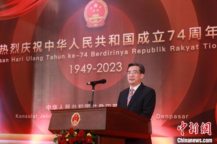 巴厘省省長代表蘇拉加在致辭中對中華人民共和國成立74周年致以熱烈祝賀。他表示,新冠疫情前,中國是巴厘省重要的游客來源國,2019年有118萬中國游客到訪巴厘島。隨著中國上海、廣州、深圳、廈門、香港與巴厘島恢復直航航班,巴厘島已準備好迎接越來越多的中國游客。