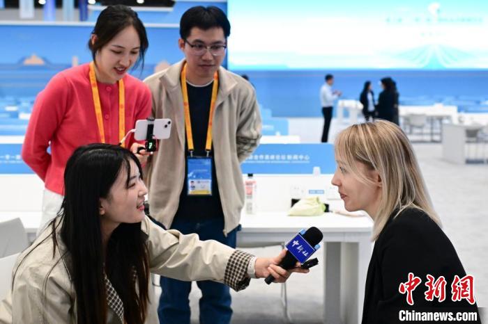 下午,會場內(nèi),各國媒體記者也陸續(xù)來“探館”。俄羅斯第一電視臺記者Nataliia Liublinskaia在接受記者采訪時表示,此次論壇將有許多國家參加,是一次重要會議,為大家聚在一起討論國際社會發(fā)展形勢提供了重要的議事平臺。談及“一帶一路”倡議近年的發(fā)展,她表示,共建國家間的道路基礎(chǔ)設(shè)施有了明顯改善,交通變得更加便利,彼此間的人員和商貿(mào)聯(lián)系更加密切。