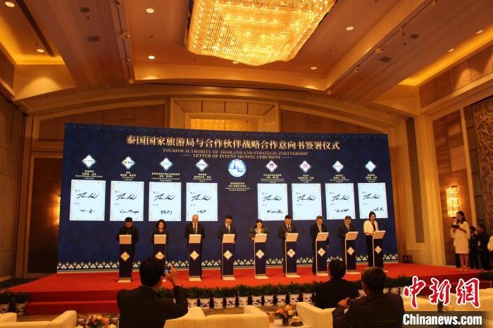 圖為泰國(guó)旅游“戰(zhàn)略合作意向書(shū)”簽署儀式現(xiàn)場(chǎng) 蘇婧欣攝