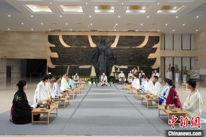 圖為研學(xué)團(tuán)隊(duì)在鄭州商都遺址博物院體驗(yàn)商周晚宴。(資料圖)韓章云攝