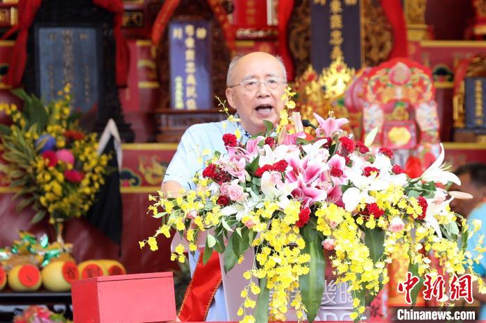 10月22日,臺(tái)北客家義民嘉年華主祭大典在臺(tái)北舉辦。世界客屬總會(huì)榮譽(yù)總會(huì)長(zhǎng)吳伯雄致辭?!≈行律缬浾?陳小愿 攝