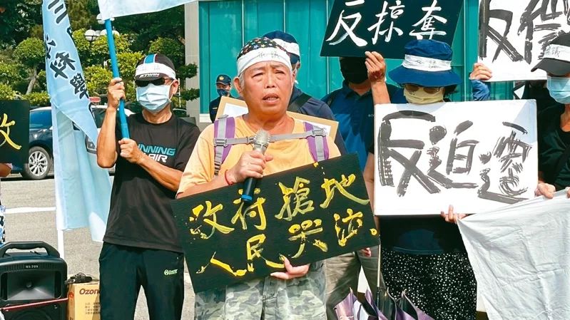 圖為遭征收區(qū)域的桃園居民不滿(mǎn)被征地,拉起布條抗?fàn)?。圖自《聯(lián)合報(bào)》