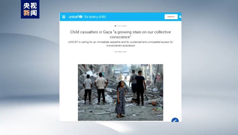 聯(lián)合國兒童基金會呼吁沖突各方盡快?;稹⒃试S人道主義救援物資進入加沙。
