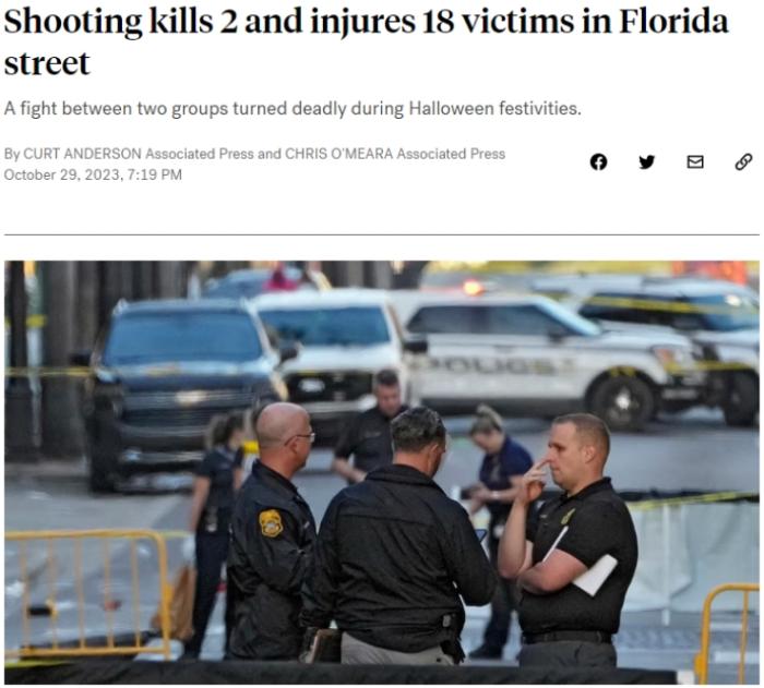 中新網(wǎng)10月30日電 據(jù)美國廣播公司(ABC)報道,當?shù)貢r間29日,美國佛羅里達州坦帕市萬圣節(jié)慶祝活動期間發(fā)生大規(guī)模槍擊,造成2人死亡,18人受傷。