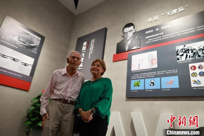展館里,一張陳納德將軍的舊照,引起他外孫女嘉蘭惠的注意??吹脚f照時(shí),她向眾人介紹外祖父并提出要在此合影留念。當(dāng)年,陳納德離開美國(guó)援華時(shí),嘉蘭惠的母親只有9歲。她說:“這張外祖父的照片讓我很感動(dòng),這意味著很多中國(guó)人記得他所做出的犧牲。”