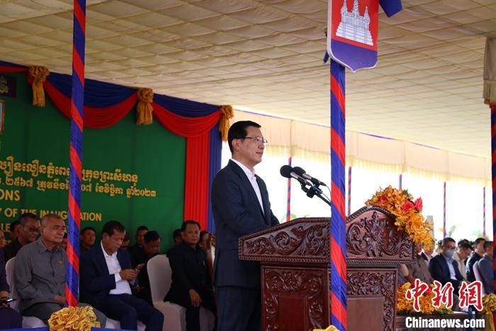 圖為柬埔寨副首相孫占托在慶典儀式上致辭。 中新社發(fā) 黎海月 攝
