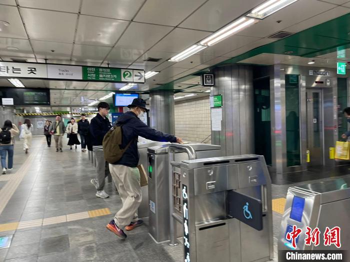 當(dāng)?shù)貢r(shí)間9日,市民在首爾地鐵新村站刷卡進(jìn)站。萬佳欣 攝
