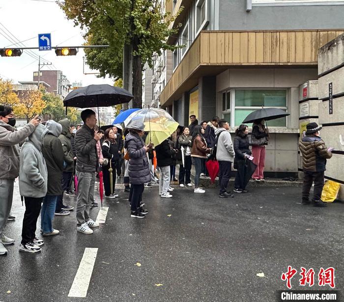 當?shù)貢r間16時20分許,中新社記者來到首爾市麻浦區(qū)延南洞景城高中校門外,此時距離最后一門必考科目結束還有約17分鐘。不少家長在雨中等待考生。