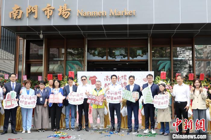 11月16日,經(jīng)過四年改建的臺(tái)北南門市場正式重新開業(yè),圖為出席開幕式的嘉賓剪彩后合影?!≈行律缬浾?陳小愿 攝