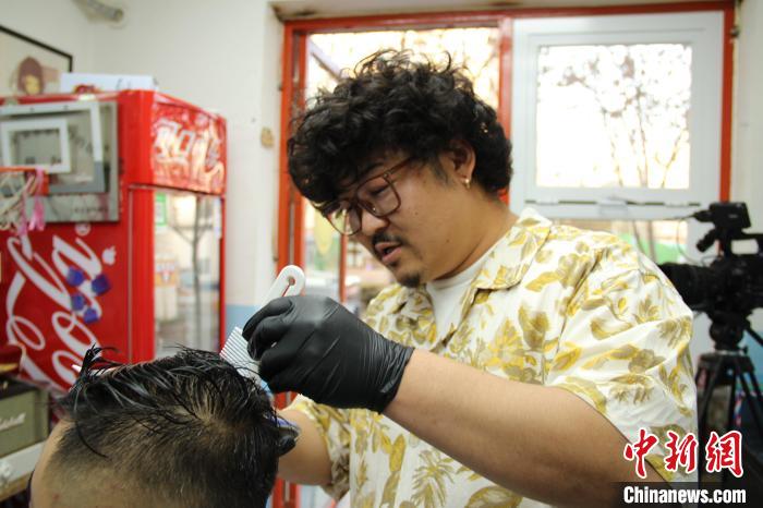 正在店里理發(fā)的薛承祚。(馬曉東 攝)