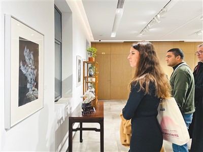 與會(huì)法方嘉賓在欣賞中國畫家的畫作。
