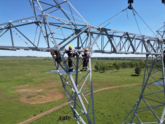 這是2023年11月15日拍攝的位于烏拉圭派桑杜省烏拉圭500千伏輸變電環(huán)網(wǎng)閉合項(xiàng)目施工現(xiàn)場。
