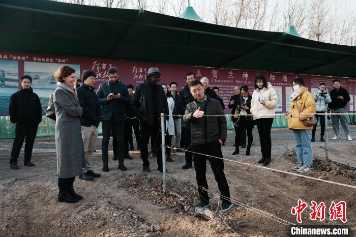 駐華使節(jié)、外交官和外國地方駐華機構(gòu)代表在賀蘭神酒莊了解葡萄藤埋土工作?!≈行戮W(wǎng)記者 崔楠 攝