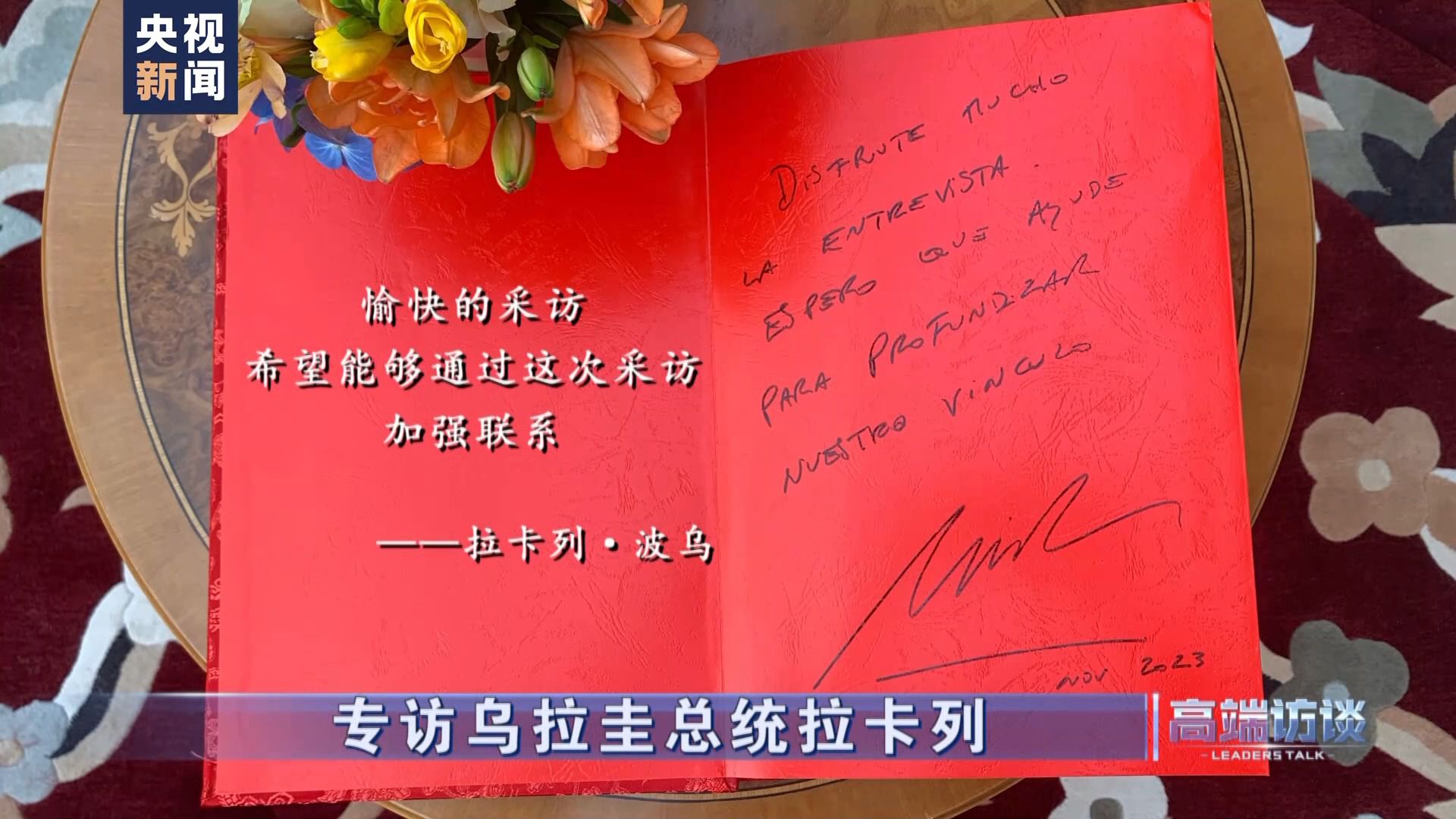 烏拉圭總統(tǒng)拉卡列·波烏在接受總臺專訪后題詞