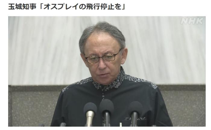 玉城表示,“正因沒有正視‘魚鷹’的危險(xiǎn)性,才釀成了如此嚴(yán)重的事故,實(shí)在令人遺憾”,他強(qiáng)調(diào)目前非常擔(dān)心“魚鷹”在民用區(qū)域和民用機(jī)場(chǎng)起降成為常態(tài),呼吁駐日美軍立即停飛“魚鷹”,直至安全問題徹底解決。