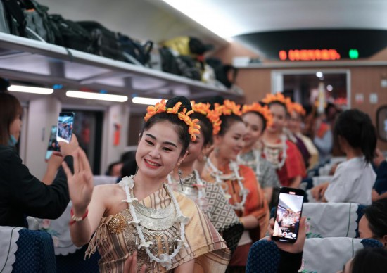 這條幸福路幫助老撾實(shí)現(xiàn)從“陸鎖國(guó)”變?yōu)椤瓣懧?lián)國(guó)”的企盼,有效跨越發(fā)展阻隔,不斷提升老撾人民的獲得感、幸福感?!盀憸嫣?hào)”動(dòng)車(chē)持續(xù)融入老撾人民的日常生活,使人們的出行邁入“動(dòng)車(chē)時(shí)代”;“兩地兩檢”通關(guān)模式有效縮短通關(guān)時(shí)間,人員往來(lái)更加高效便捷。兩年來(lái),中老鐵路全線每月旅客發(fā)送量已由開(kāi)通初期的60多萬(wàn)人次增至110多萬(wàn)人次,累計(jì)發(fā)送旅客2420萬(wàn)人次。