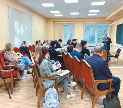 中國學者在俄羅斯中國國際學校給學生們做講座。