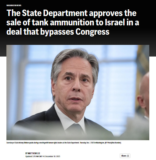 報道還稱,美國國務院此舉意味著,此次對以軍售將繞過國會對對外軍售的審查要求。當美國政府認為急需交付武器而無需等待立法者批準時,會繞過國會直接動用緊急授權,不過這種舉動是罕見的。