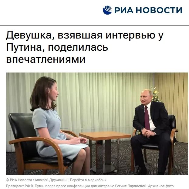 普京接受失明女孩采訪。圖片來源:俄新社報道截圖