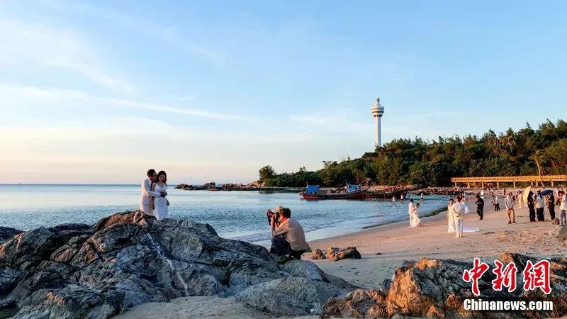圖為文昌市木蘭灣美麗濱海風(fēng)光吸引不少新人在此拍攝婚紗照。凌楠 攝