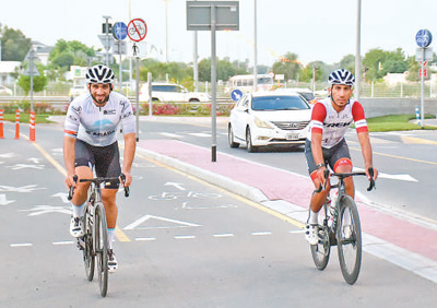 兩名騎行愛好者在“迪拜騎行”活動中。