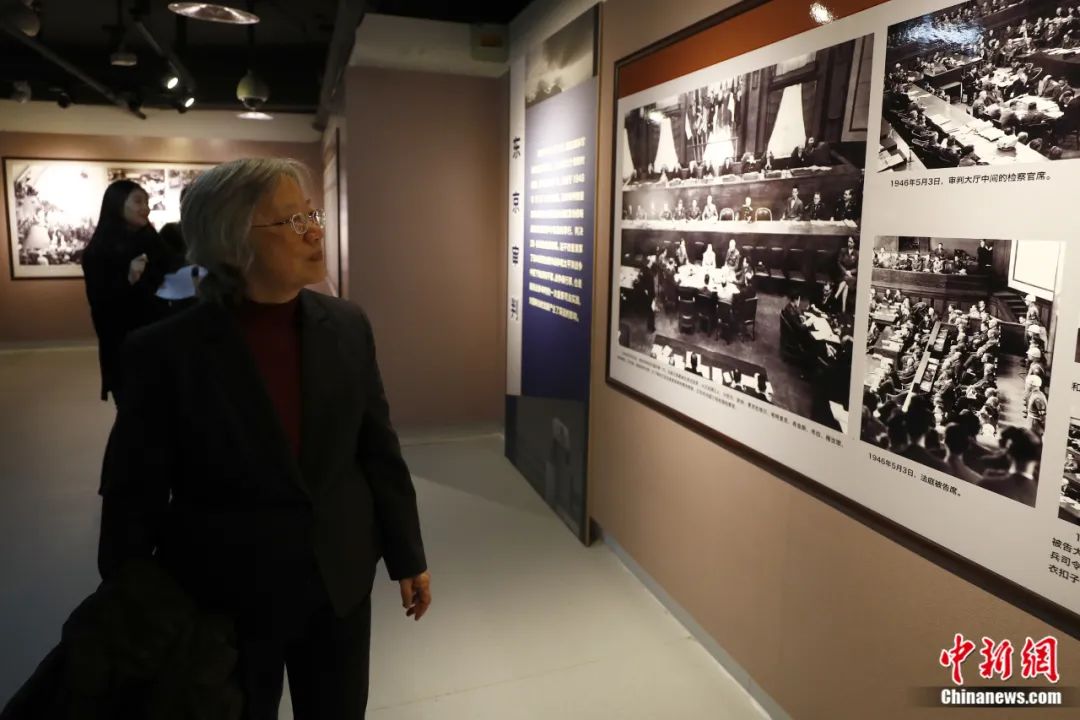 2019年12月13日,《正義的審判——紀(jì)念東京審判宣判71周年專(zhuān)題展》在中國(guó)人民抗日戰(zhàn)爭(zhēng)紀(jì)念館開(kāi)幕,270余幅珍貴歷史照片再現(xiàn)“東京審判”。圖為遠(yuǎn)東國(guó)際軍事法庭中國(guó)法官梅汝璈之女梅小侃參觀專(zhuān)題展。富田 攝