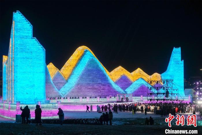 第二十五屆哈爾濱冰雪大世界主塔“冰雪之冠”景觀 趙宇航 攝