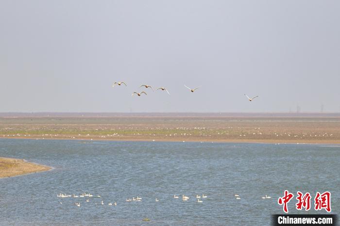 2023年12月1日,一群候鳥從江西南昌鯉魚洲管理處附近的鄱陽湖水域上方飛過。(資料圖)劉力鑫攝