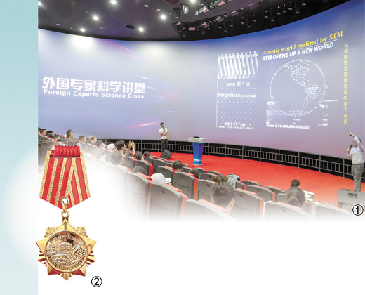 圖①:中國科技部國外人才研究中心主辦的2023年外國專家科學講堂系列活動,邀請各領域外國專家為中國學生及家長普及科學知識。圖為一位外國專家(右)在北京天文館做物理講座。